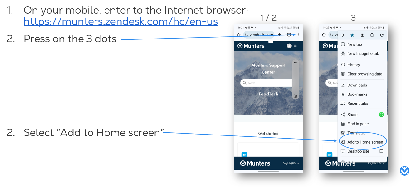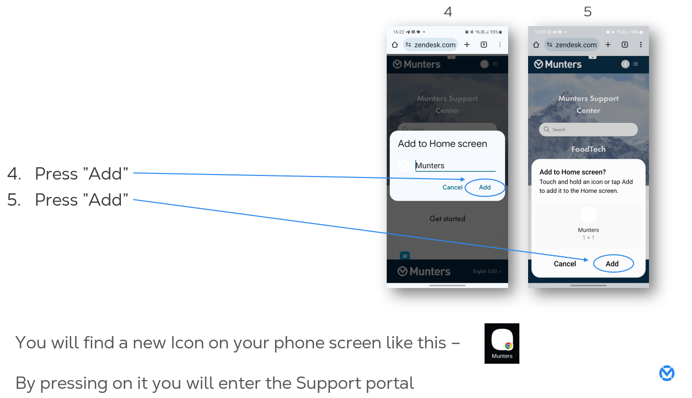 How can I add Munters Portal as a shortcut to my Mobile Home page
