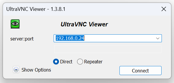 To access a computer through the UltraVNC Viewer program, type in the computer IP address.